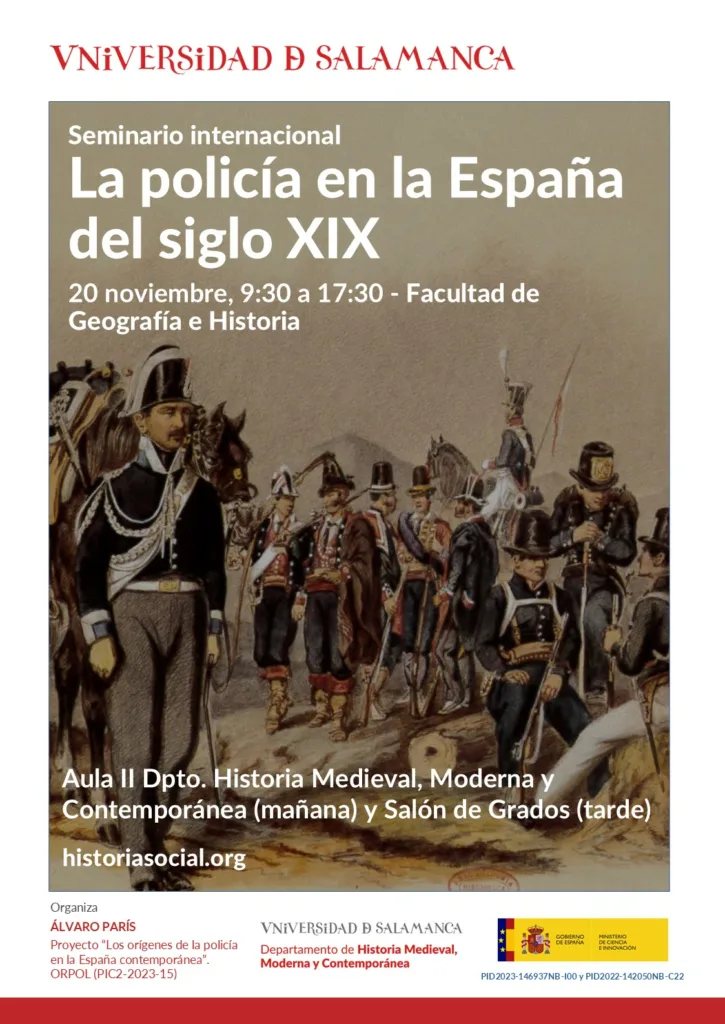 Organizan : Álvaro París, Proyecto ORPOL “Los orígenes de la policía en la España contemporánea: la Superintendencia General de Policía en perspectiva global (1824-1835)”,; Departamento de Historia Medieval, Moderna y Contemporánea (ayuda para la organización de eventos científicos); proyecto Poderes en la sombra. Opinión pública, complot y teorías de la conspiración en el mundo contemporáneo (PID2023-146937NB-I00); proyecto Transformaciones sociales en Madrid y la Monarquía Hispánica en la Edad Moderna (PID2022-142050NB-C22)